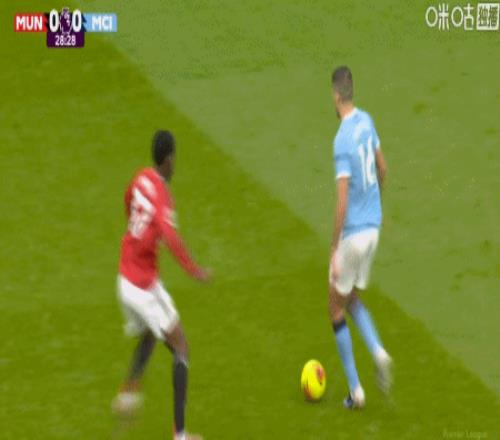 第29分钟,稍显迟疑,罗德里拿球被梅努上抢
