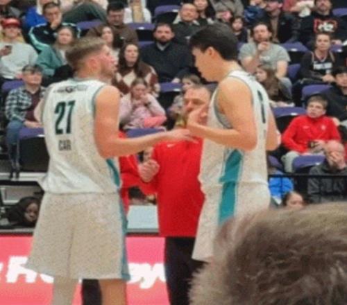 杨瀚森内线封盖前16号秀扎伊尔-史密斯的扣篮。